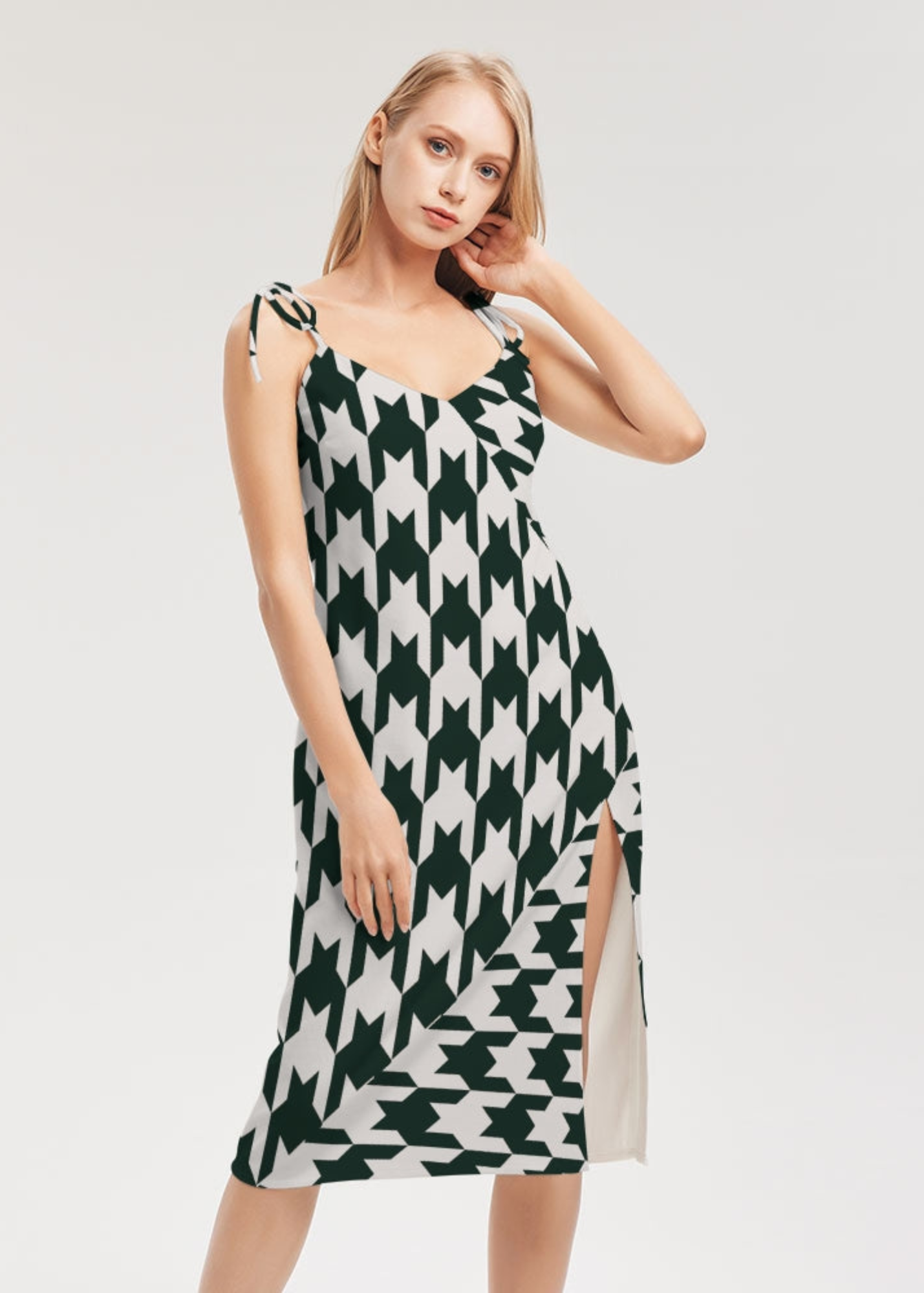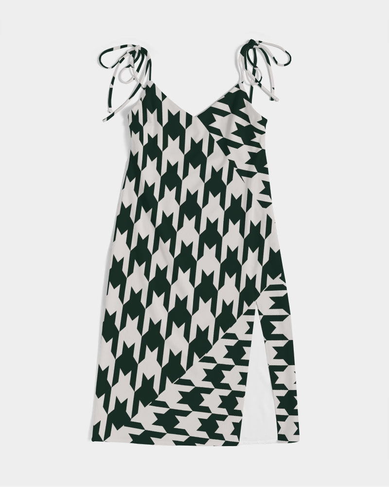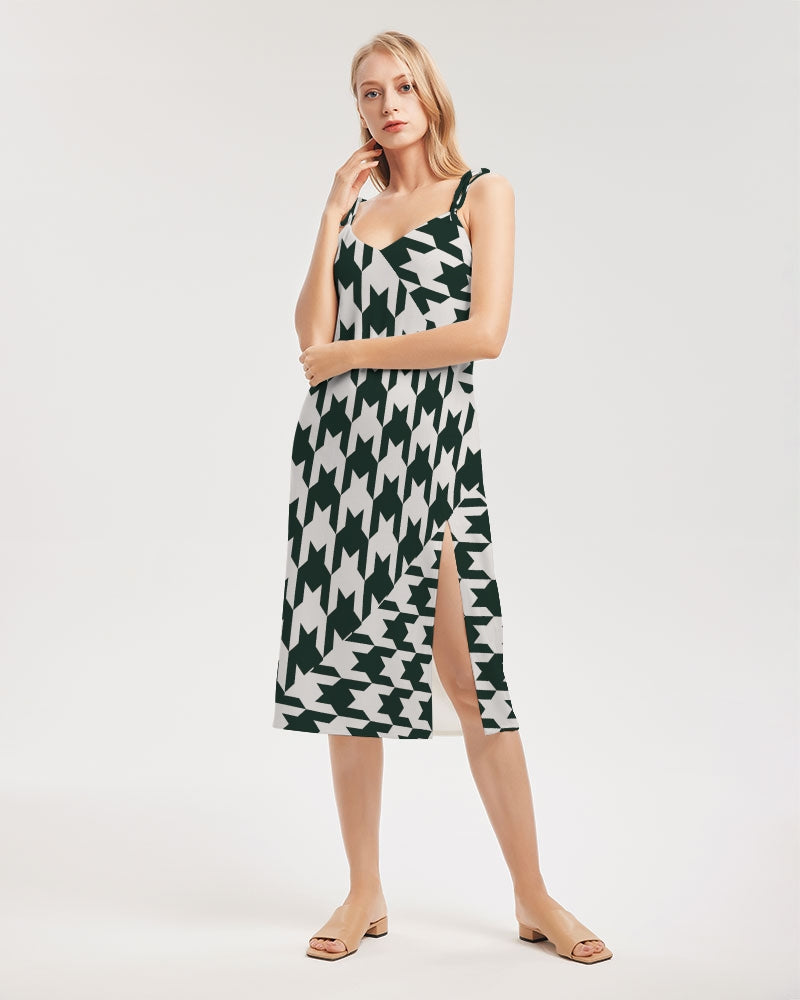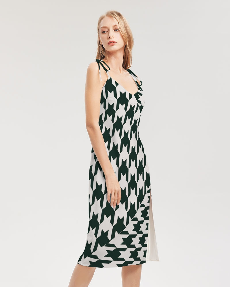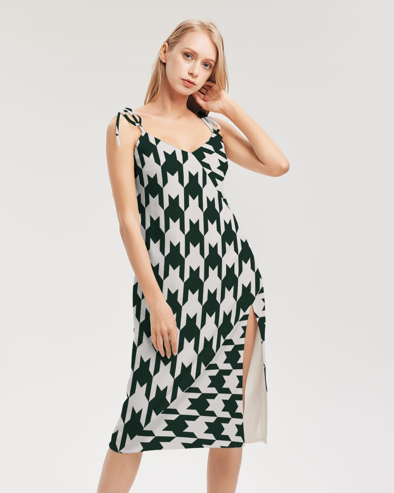 Product DetailsThis versatile and chic midi-length dress is the perfect piece for your day-to-night transitions. With tie close straps and front split, this dress will have all eyes on you.