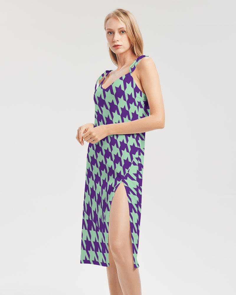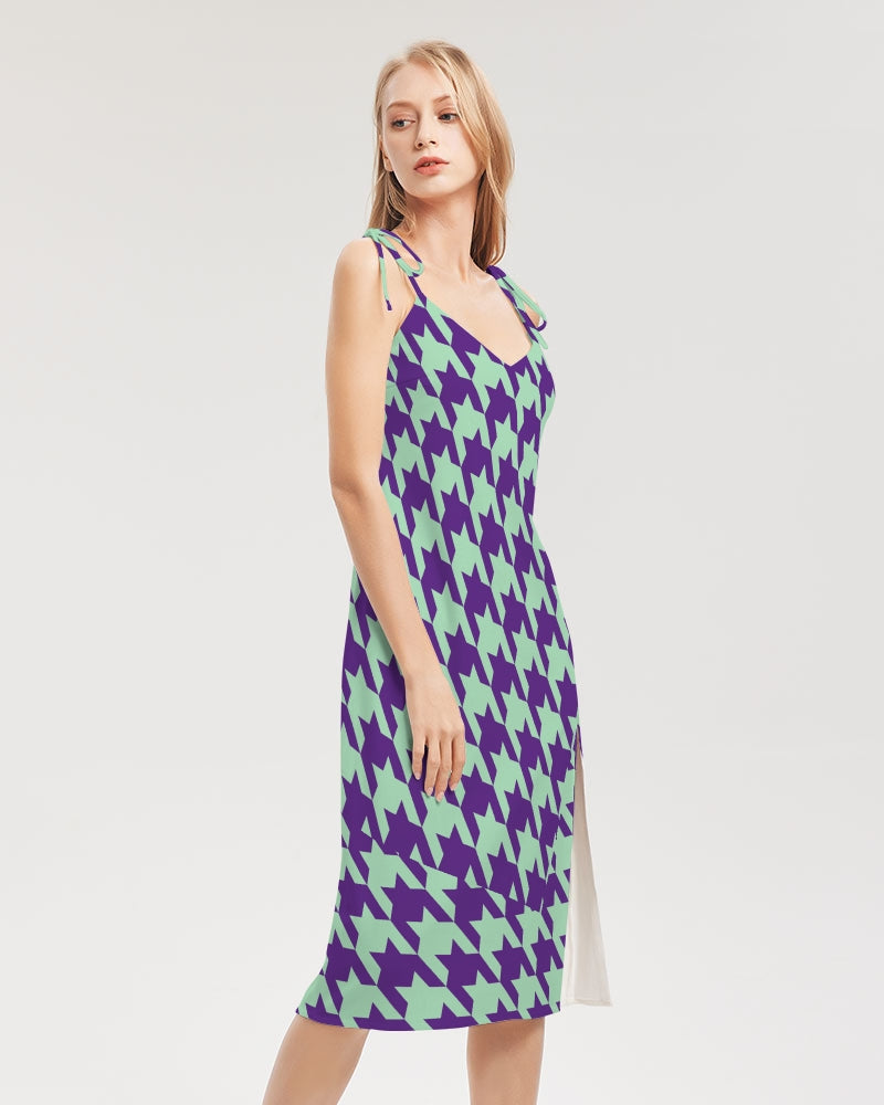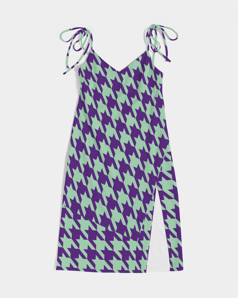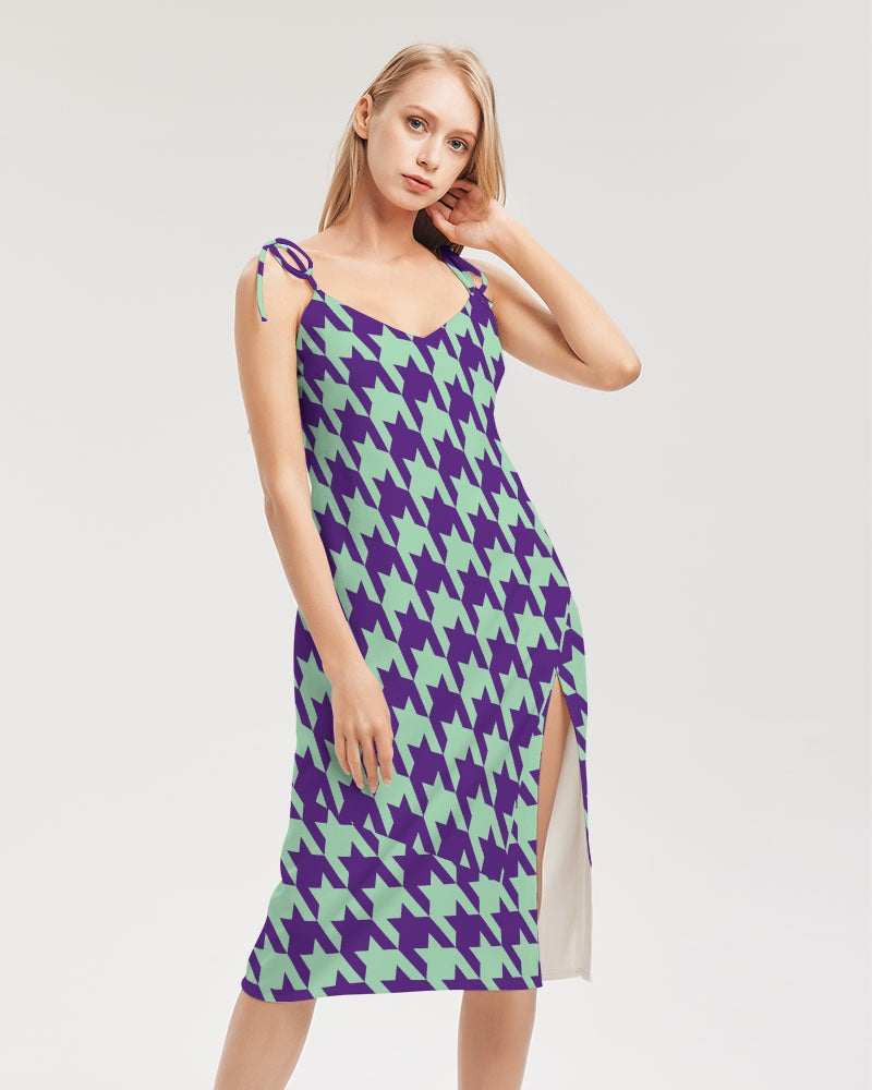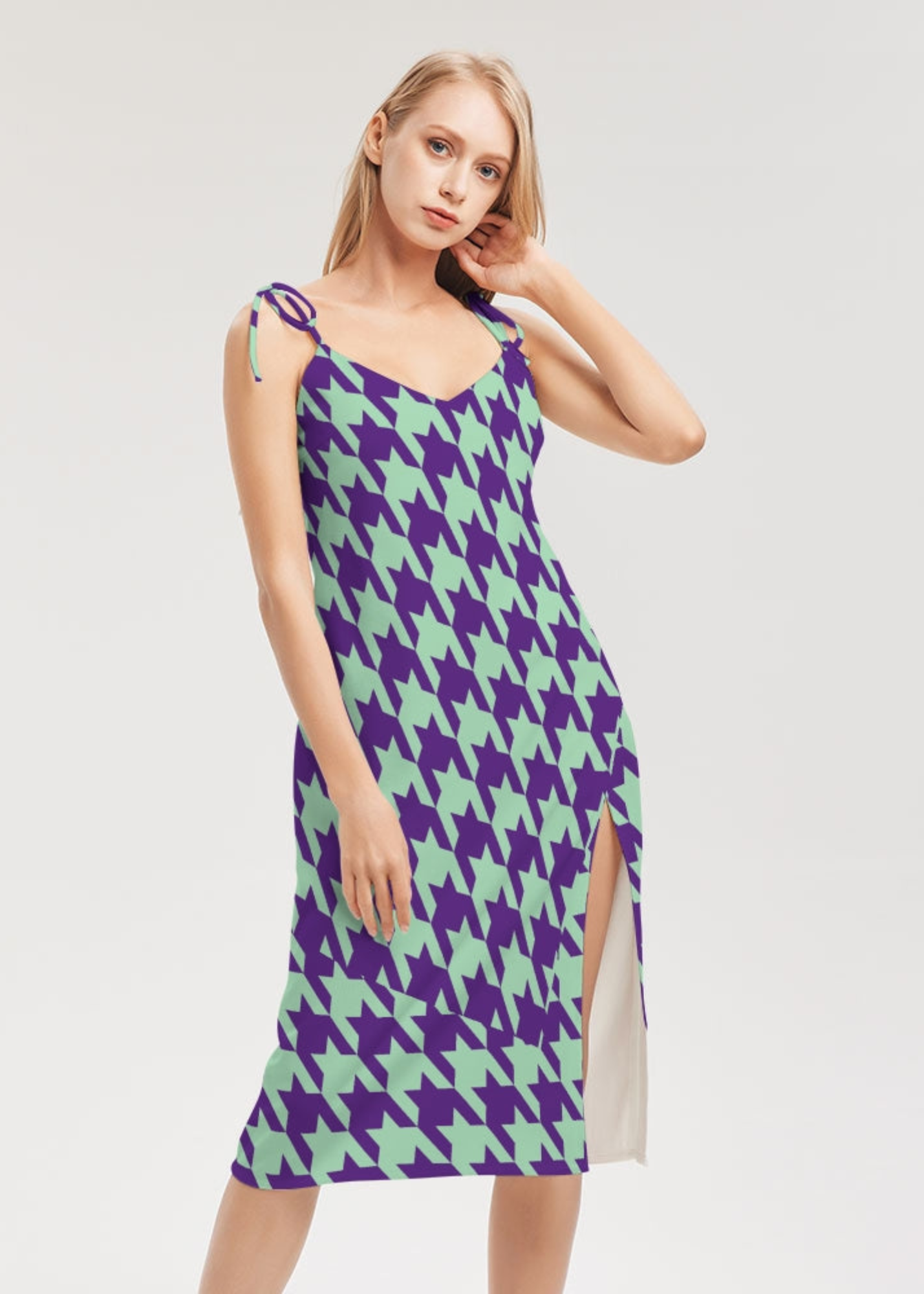 About The ArtWintermint Product DetailsThis versatile and chic midi-length dress is the perfect piece for your day-to-night transitions. With tie close straps and front split, this dress will have all eyes on you.